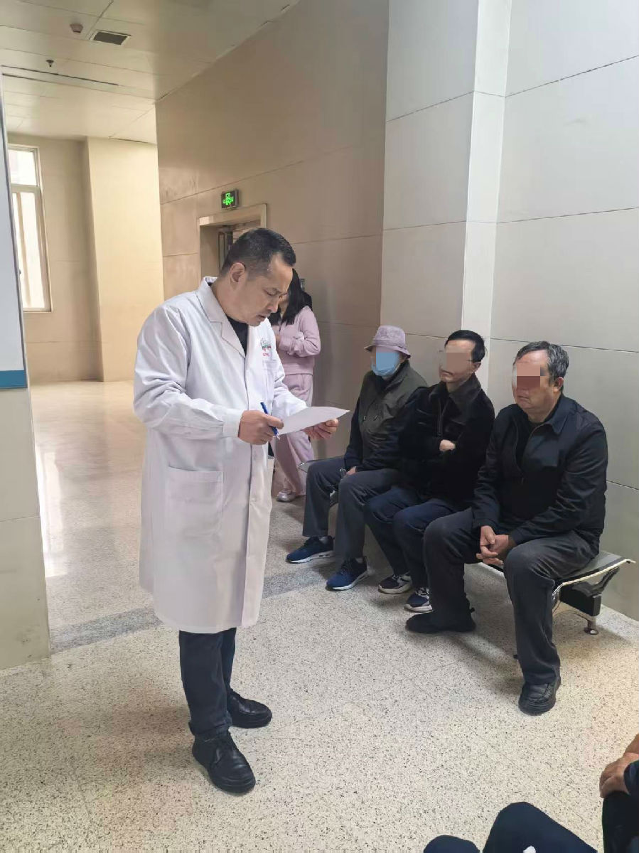 一大早,泌尿外科门诊区域暖意融融,在科主任魏福奎的带领下,医护团队早已准备就绪,候诊区电子屏清晰地展示着专家信息,诊室内检查设备一应俱全。护士们备好了血压仪、采血器材,以饱满的精神状态迎接每一位前来参与活动的老年朋友。